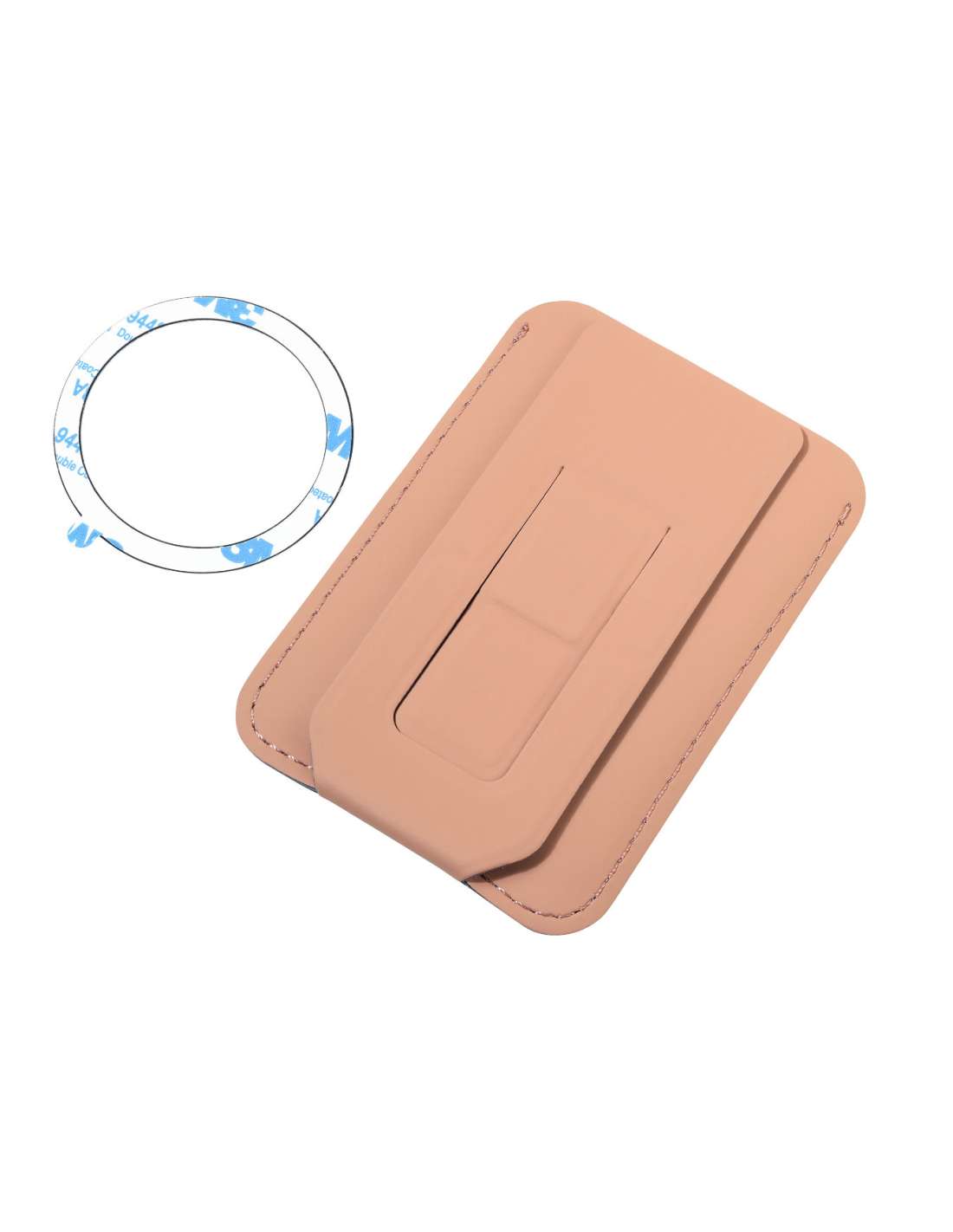 Kartenetui MagSafe, für 1-2 Karten zur magnetischen Befestigung am Smartphone, Aufstellfunktionen für horizontales und vertikales Aufrichten des Handys, zusätzlicher MagSafe Metallring mit 3M Klebefläche zur individuellen Befestigung, z.B. an allen gängigen Smartphones, Hüllen, Notizbüchern, etc., Kunstleder, braun