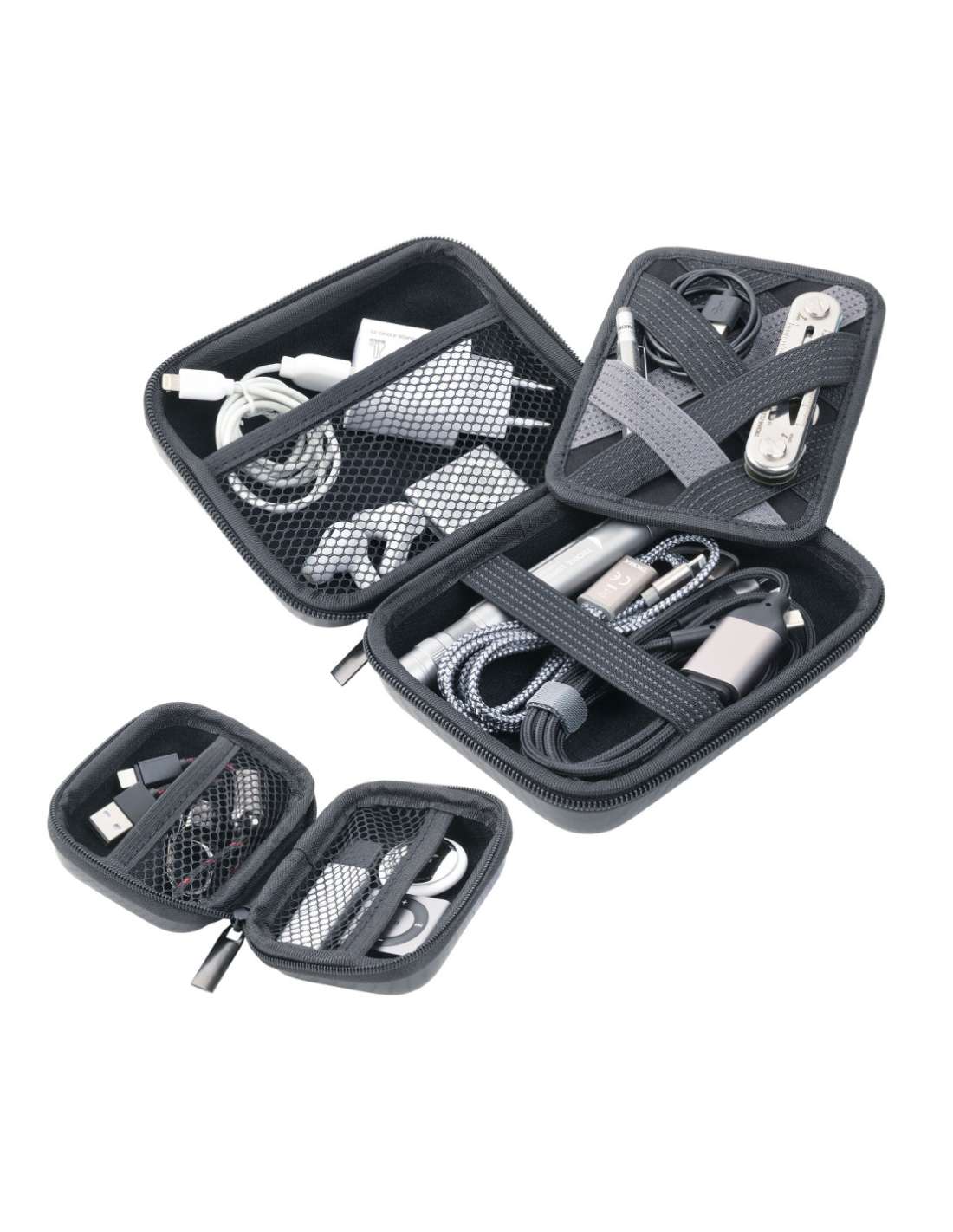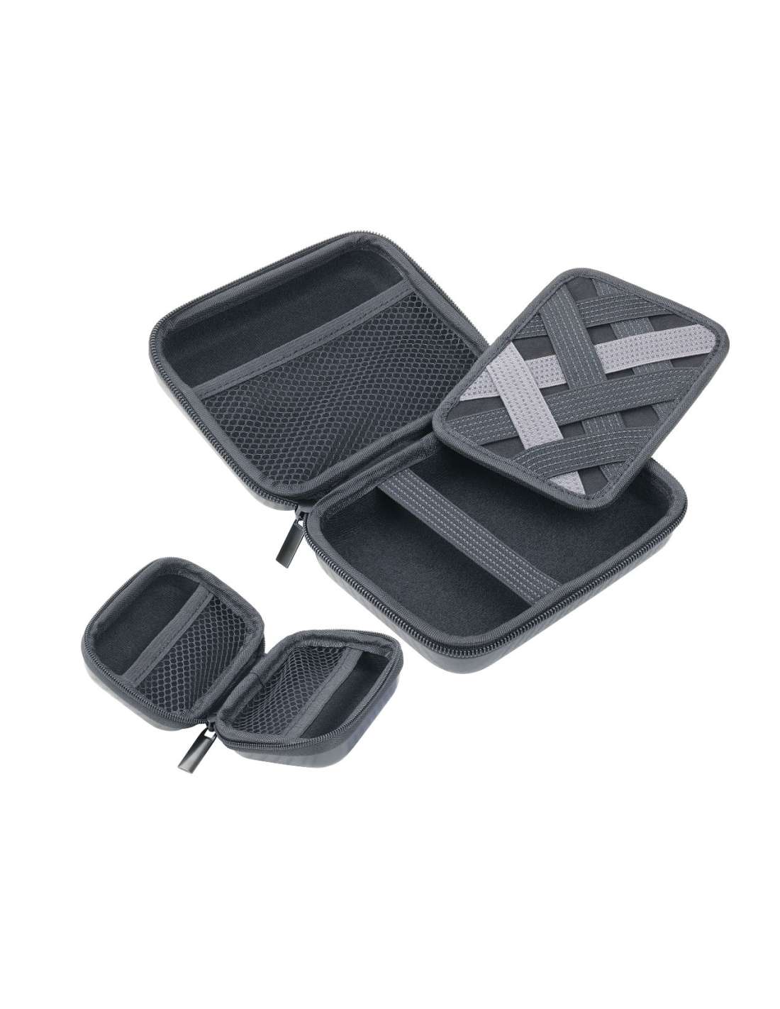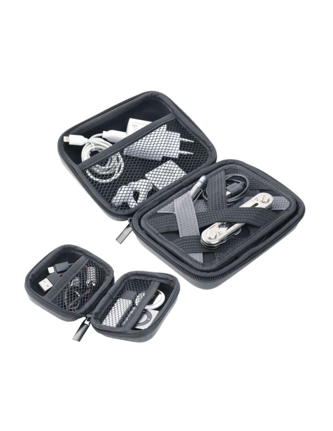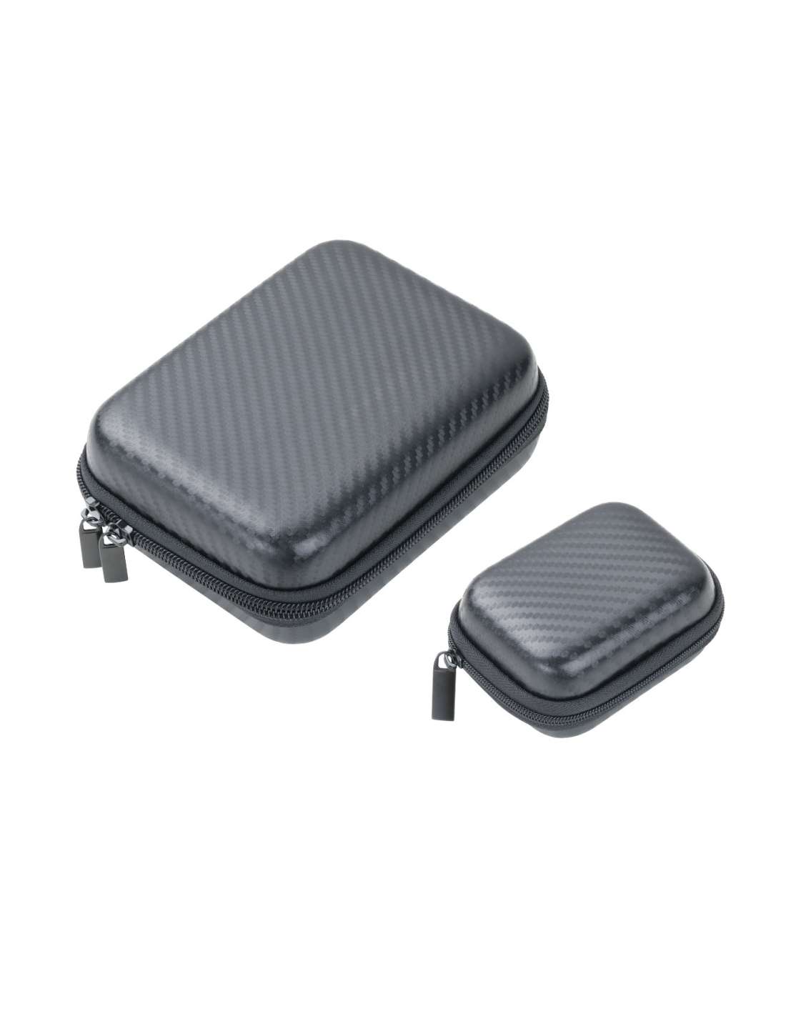 Set aus 2 Organizer-Etuis mit Reißverschluss, kleines Etui: 2 Innenfächer, großes Etui: 2 Innenfächer und 1 entnehmbare Elastikband-Einlage für Zubehör (Every Day Carry), Kunststoff, Samt, glänzend, Carbon Optik