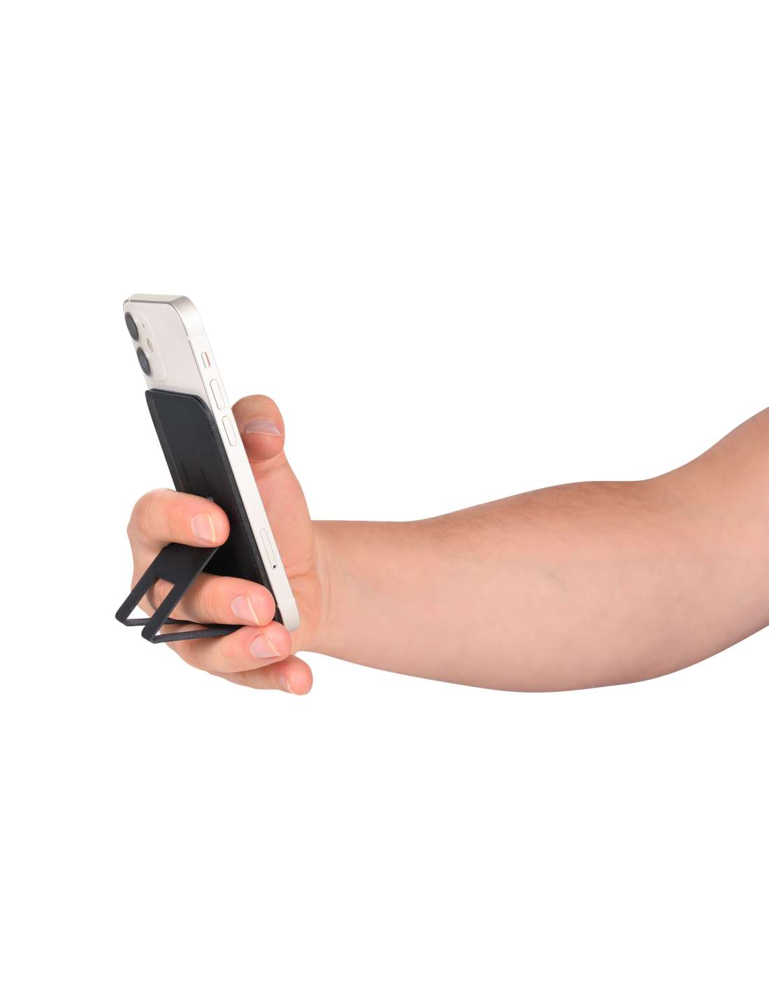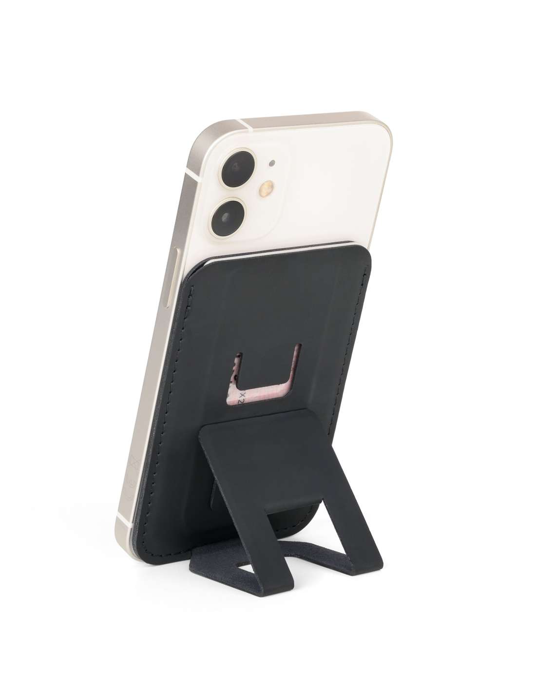 Étui pour cartes MagSafe, 1 à 2 cartes à fixer magnétiquement sur le smartphone, fonctions de positionnement pour redresser le téléphone à l'horizontale et à la verticale, similicuir, noire