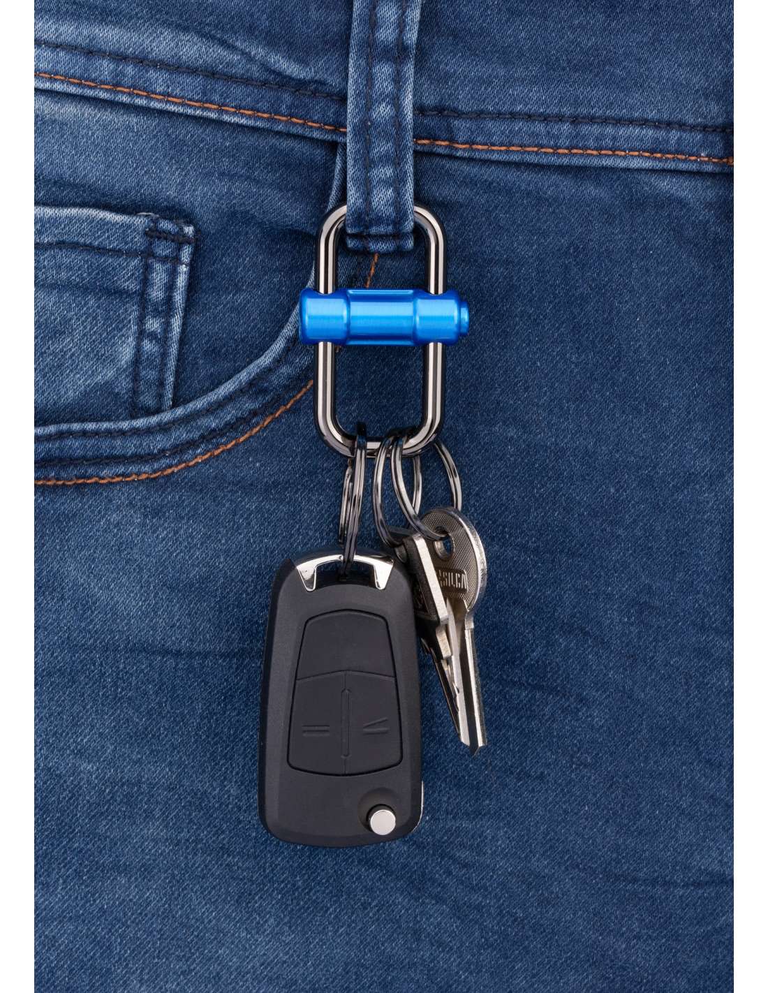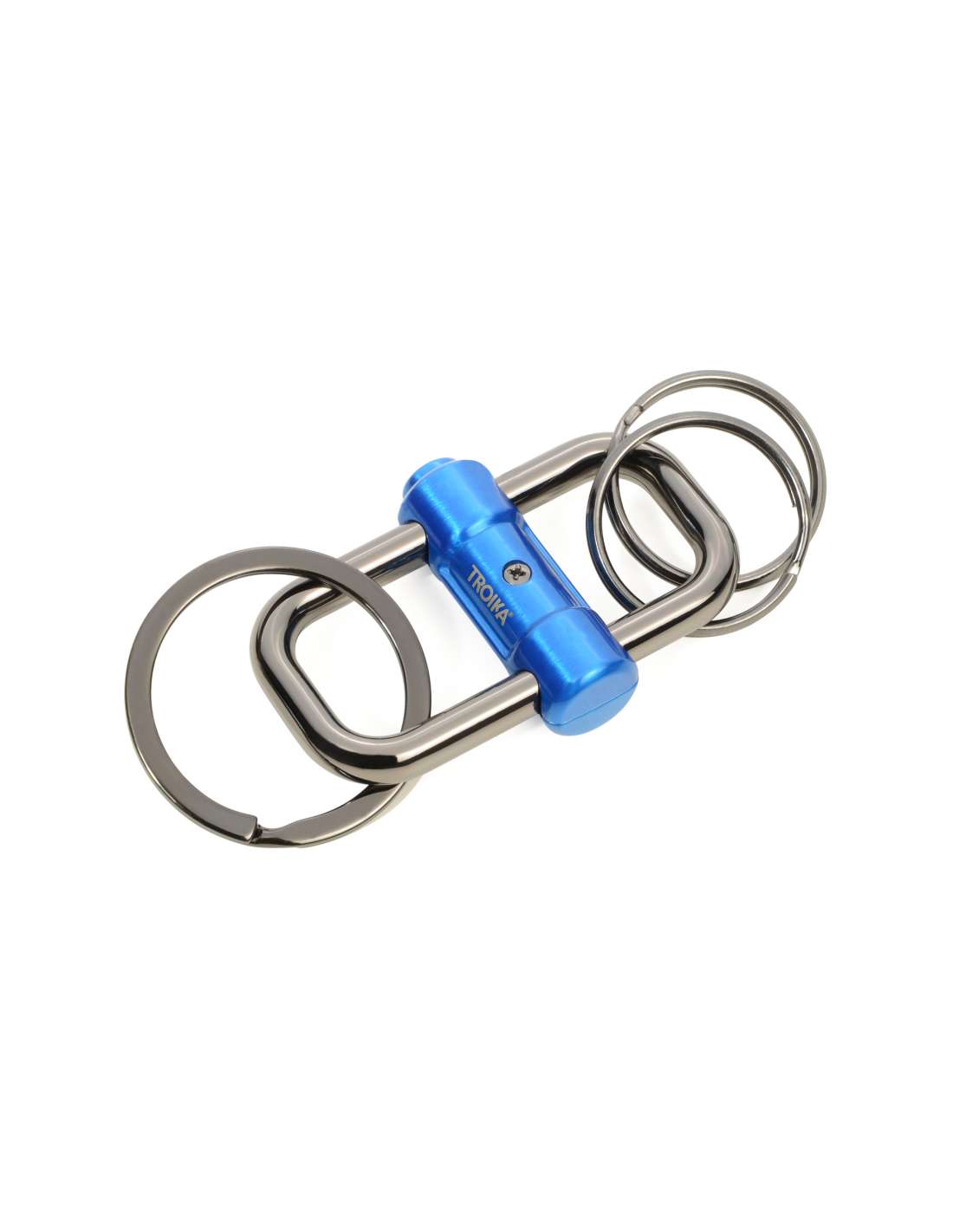 TROIKA 2-WAY KEY Porte-clés avec 3 anneaux et fermeture coulissante, bleu/noir chromé