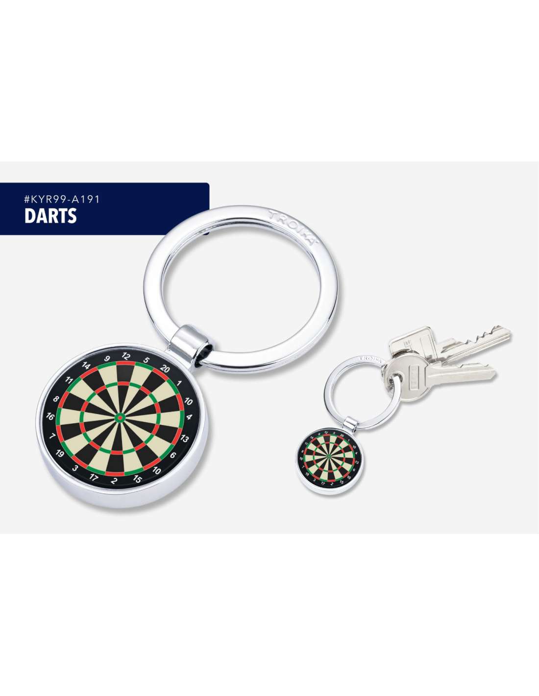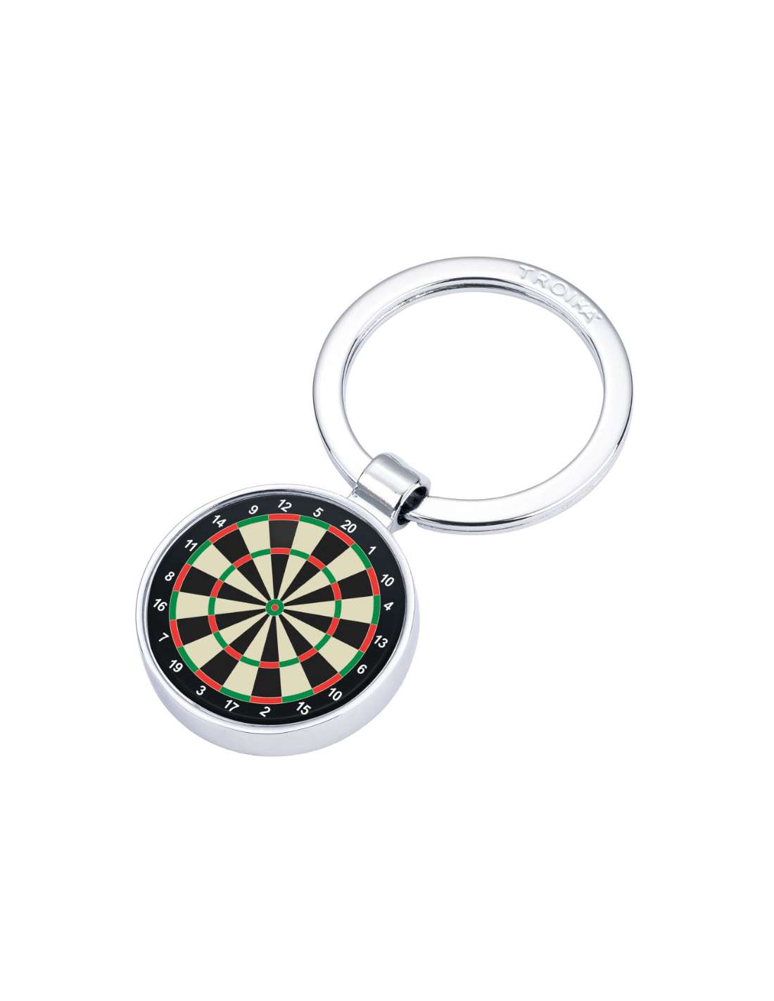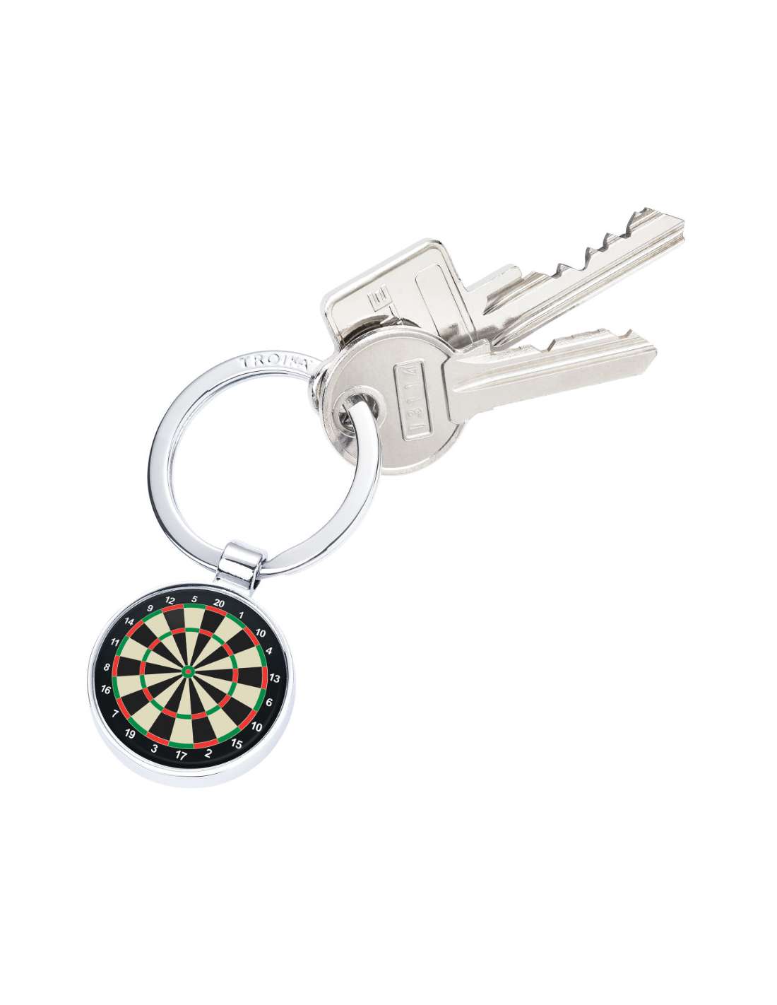 Porte-clés, motif : DART, rond, fonte métallique, chrome, brillant, argenté/multicolore